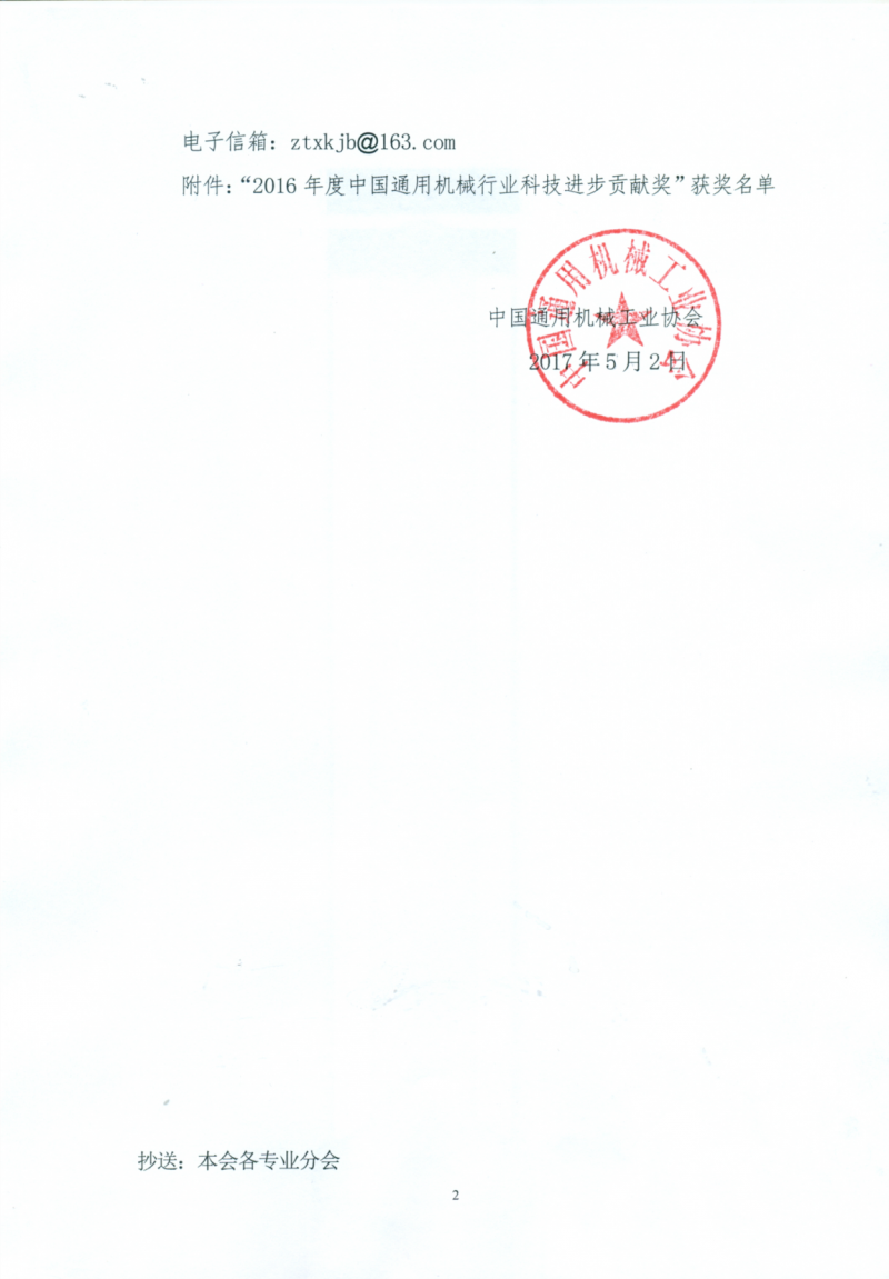 “2016年度中国通用机械行业科技进步贡献奖”表彰公告