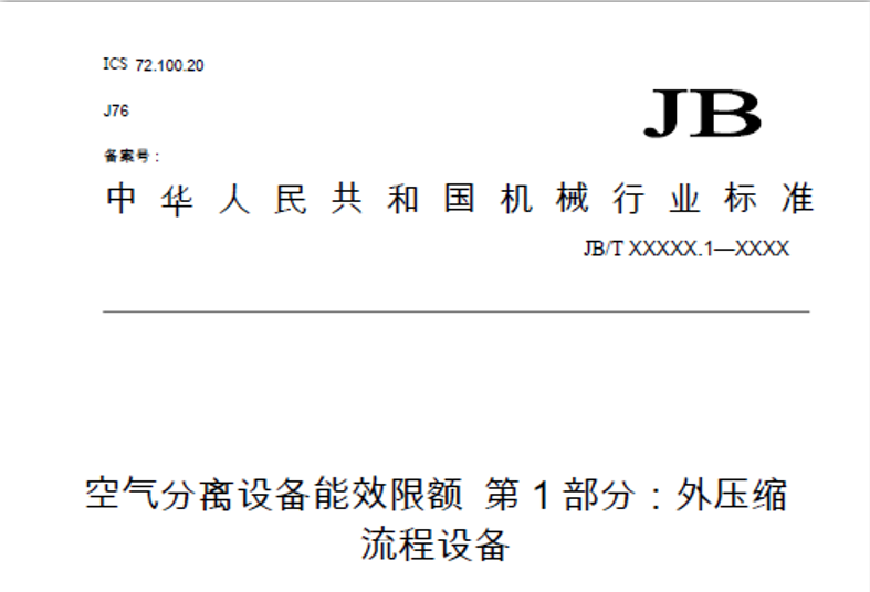 《空分设备能效限额 第1部分:外压缩设备》等四项机械行业标准征求意见